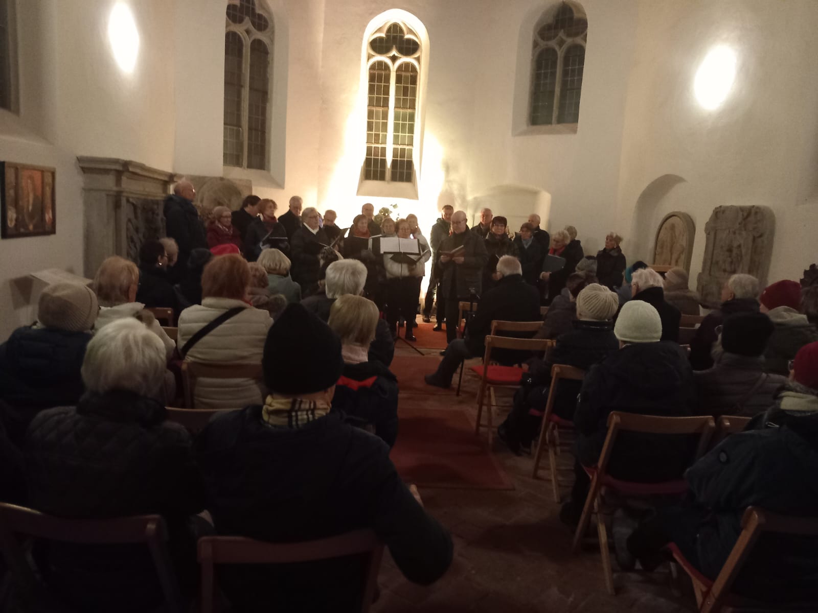Es war ein wundervoller Auftritt des Chores, der neue und alte stimmungsvolle Lieder bot. In den Pausen las Peter Borel passende Gedichte von Martin Thomann.