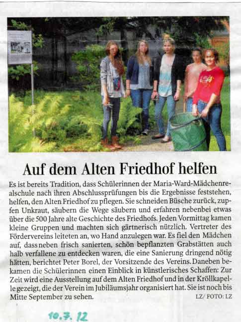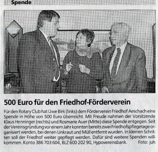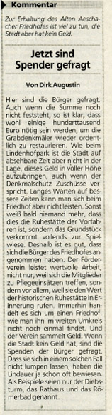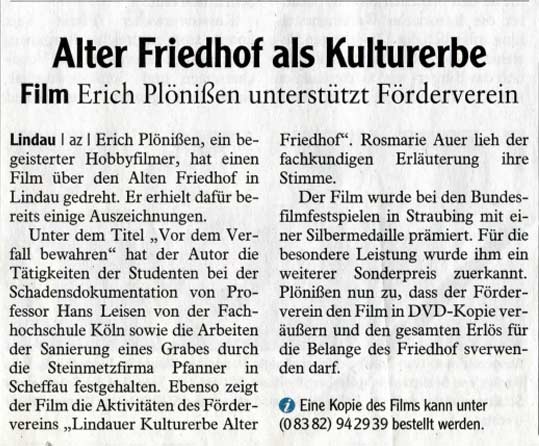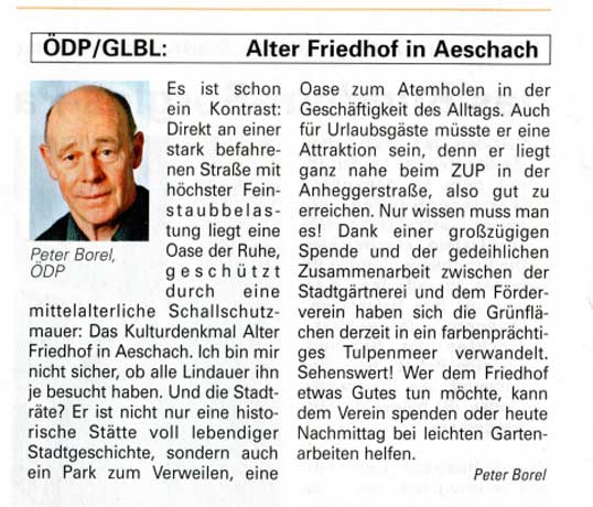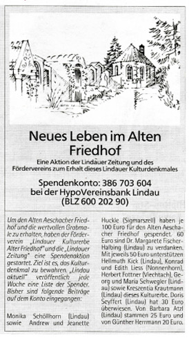 06.09.2014, Lindauer Zeitung, Baumspende für den alten Friedhof